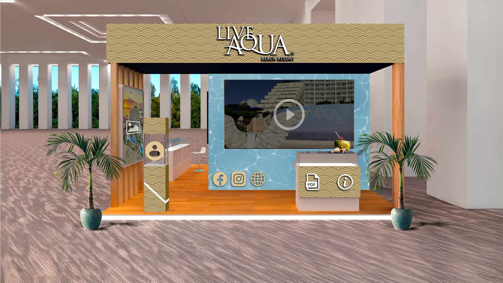 Live Aqua Cancún ofrece un centro de convenciones exclusivo de 1980 m², ideal para eventos de hasta 1000 personas en formato auditorio y 600 en banquete, con 9 salones divisibles, 7 salas pequeñas, un board room ejecutivo y espacios al aire libre en terrazas, albercas y playa. Las 371 habitaciones remodeladas cuentan con muebles de lujo, menú de aromaterapia, cafetera Nespresso, pantallas inteligentes y conexión Wi-Fi gratis.